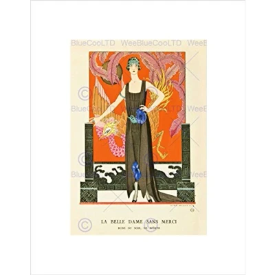 Wee Blue Coo Vintage Lady Deco Nouveau Woman Bird Wall Art Print