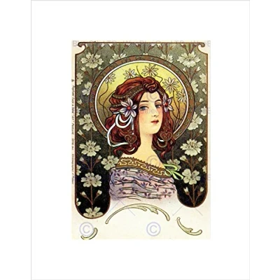 Wee Blue Coo VINTAGE LADY FLOWERS 1902 NOUVEAU NEW BLACK FRAMED ART PRINT PICTURE B12X11657
