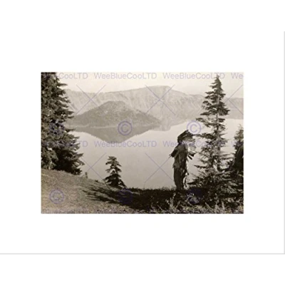 Wee Blue Coo VINTAGE LANDSCAPE CRATER LAKE OREGON NATIVE AMERICAN FRAMED ART PRINT B12X11781