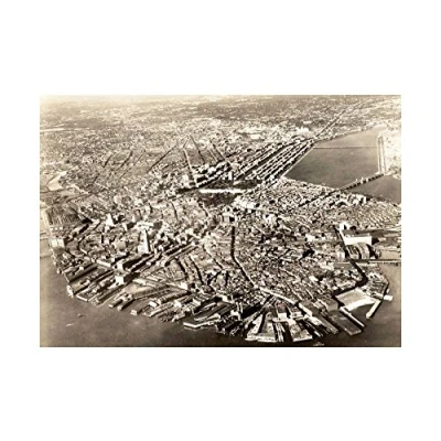 Wee Blue Coo Vintage Photo Aerial View Cityscape Boston USA Waterfront Wall Art Print