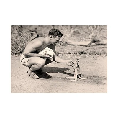 Wee Blue Coo Vintage Photo American Soldier Kangaroo Joey Wall Art Print