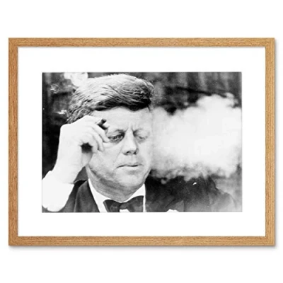 Wee Blue Coo Vintage Photo Bw Jfk Kennedy Smoking Cigar Framed Art Print Picture F12X1714