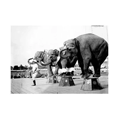 Wee Blue Coo Vintage Photo Circus Elephant Balance Act Wall Art Print