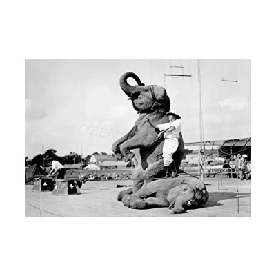 Wee Blue Coo Vintage Photo Circus Elephant Trainer Stunt Weird USA Wall Art Print