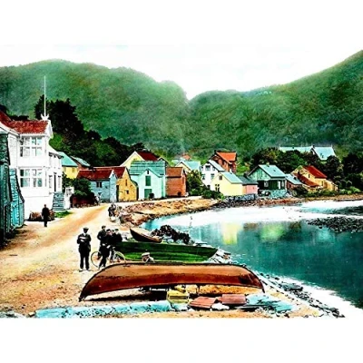 Wee Blue Coo Vintage Photo Colour Tint Eide Granvin Fishing Village Norway House Boat Art Print Poster Decor 12X16 Inch
