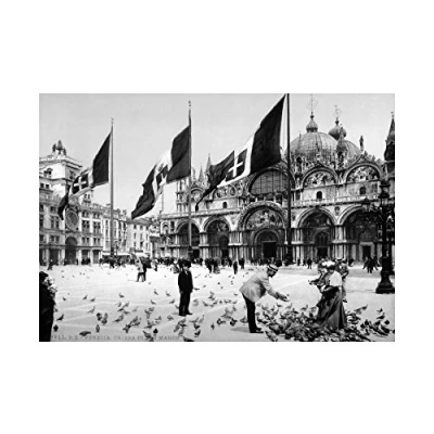Wee Blue Coo Vintage Photo Piazza San Marco Basilica 1895 Venice Italy Wall Art Print