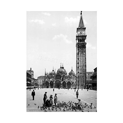 Wee Blue Coo Vintage Photo Piazza San Marco Campanile 1895 Venice Italy Wall Art Print