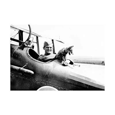 Wee Blue Coo Vintage Photo Pilot Fox Aeroplane Cool Cute Aviation Usa Wall Art Print