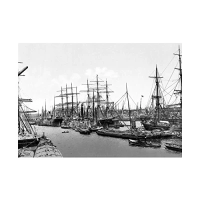 Wee Blue Coo Vintage Photo Sailing Ships Asiakai Hamburg 1895 Germany Wall Art Print