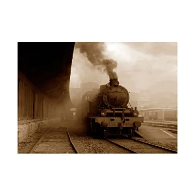 Wee Blue Coo Vintage Photo Steam Train Locomotive Portugal Wall Art Print