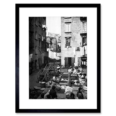 Wee Blue Coo VINTAGE PHOTO STREET LAUNDRY NAPLES 1895 ITALY FRAMED PRINT F97X6485