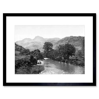 Wee Blue Coo Vintage Photo Windermere Langdale Pikes Lake District Framed Wall Art Print