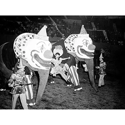 Wee Blue Coo Vintage Photography Circus Elephant Clown Face Showgirl USA Art Print Poster Wall Decor 12X16 Inch