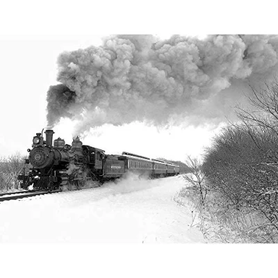 Wee Blue Coo Vintage Photography Train Locomotive Black White Engine Art Print Poster Wall Decor 12X16 Inch