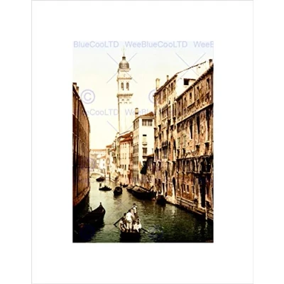 Wee Blue Coo VINTAGE PHOTOGRAPHY VENICE ITALY CANAL GONDOLA CHURCH FRAMED ART PRINT B12X3554