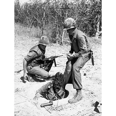 Wee Blue Coo Vintage Photography War Vietnam USA Gas Mask Soldier Art Print Poster Wall Decor 12X16 Inch