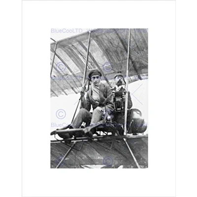 Wee Blue Coo VINTAGE PORTRAIT PILOT CAMERAGRAPHER PLANE BLACK FRAMED ART PRINT B12X3524