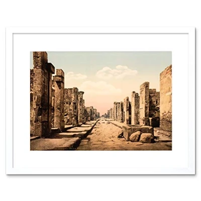 Wee Blue Coo Vintage Roman Ruin Fortuna Street Pompeii Vesuvius Italy Framed Wall Art Print