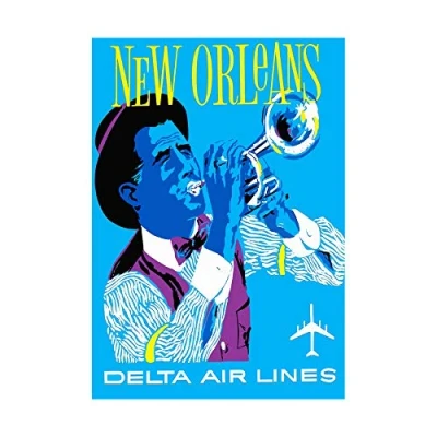 Wee Blue Coo Vintage Travel America Air Line New Orleans Jazz Picture Wall Art Print
