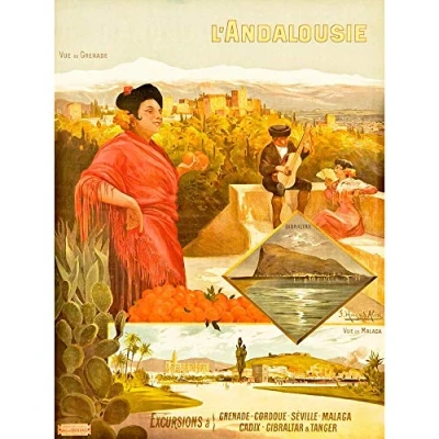 Wee Blue Coo Vintage Travel Grenada Spain Gibraltar Andalousie Art Print Poster Wall Decor 12X16 Inch