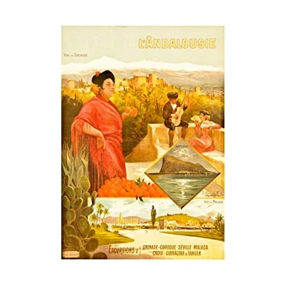 Wee Blue Coo Vintage Travel Grenada Spain Gibraltar Picture Wall Art Print