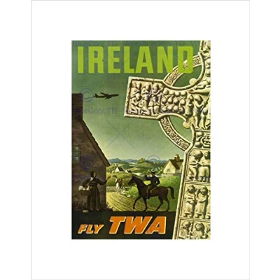 Wee Blue Coo VINTAGE TRAVEL IRELAND CELTIC CROSS RURAL NEW BLACK FRAMED ART PRINT B12X11914