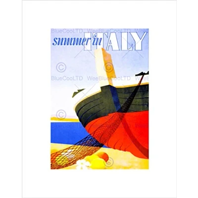 Wee Blue Coo Vintage Travel Italy Summer Beach Boat Wall Art Print