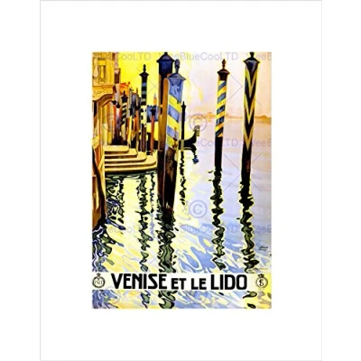 Wee Blue Coo VINTAGE TRAVEL VENICE LIDO CANAL ITALY NEW BLACK FRAMED ART PRINT B12X11937