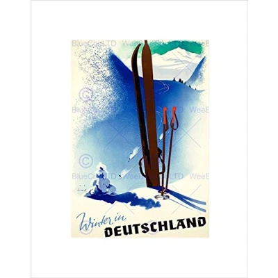 Wee Blue Coo VINTAGE TRAVEL WINTER DEUTSCHLAND GERMANY SPORT SKI FRAMED ART PRINT B12X11944