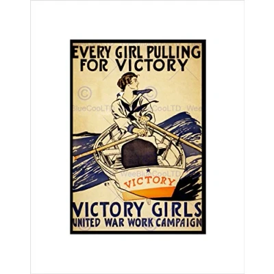 Wee Blue Coo VINTAGE VICTORY GIRLS WAR WORK CAMPAIGN PULLING BOAT ROWING ART PRINT B12X11947