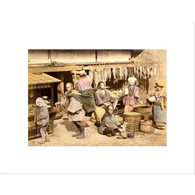 Wee Blue Coo VINTAGE WATERCOLOUR PORTRAIT FISH MARKET JAPAN FRAMED ART PRINT MOUNT B12X11854