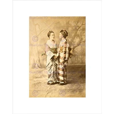 Wee Blue Coo Vintage Watercolour Portrait Geisha Japan Wall Art Print