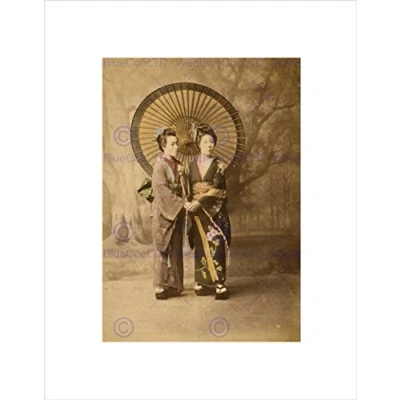 Wee Blue Coo Vintage Watercolour Portrait Ladies Japan Parasol Wall Art Print