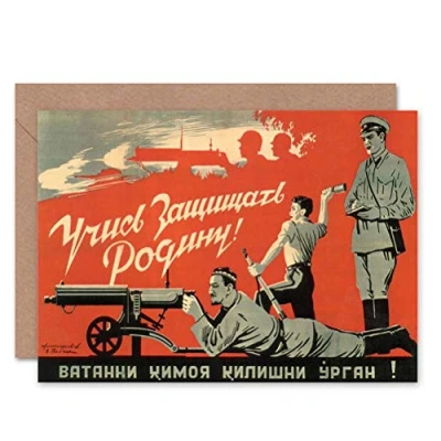 Wee Blue Coo WAR DEFEND MOTHERLAND SOVIET UNION SECOND WORLD BLANK GREETINGS CARD