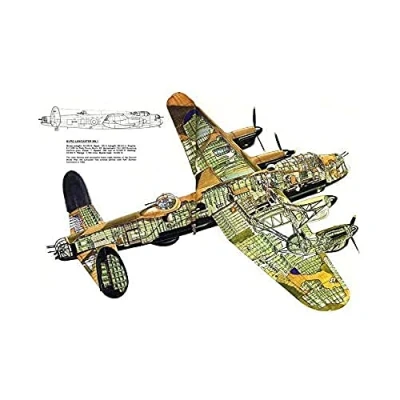 Wee Blue Coo WAR DRAWING PLANE BOMBER AVRO LANCASTER CUTAWAY WWII UK FRAMED PRINT B12X6660