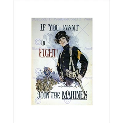 Wee Blue Coo WAR ENLIST MARINES FIRST WORLD VINTAGE ADVERT BLACK FRAMED ART PRINT B12X1867