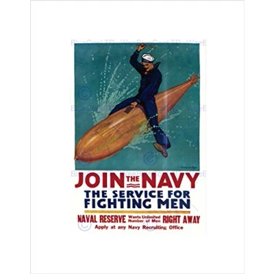 Wee Blue Coo WAR FIRST WORLD NAVY RECRUITMENT ENLIST VINTAGE AD FRAMED ART PRINT B12X1896