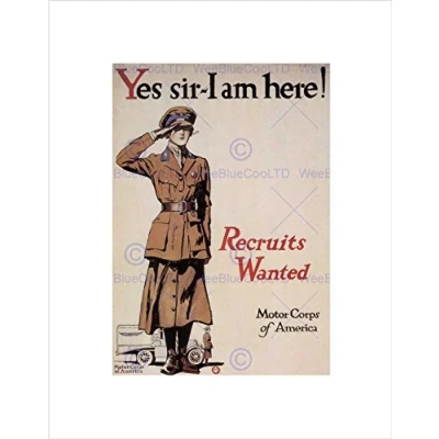Wee Blue Coo War First World Recruit Enlist Women Motor Corps Wall Art Print