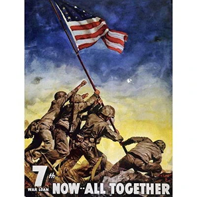 Wee Blue Coo War Loan Iwo Jima Stars Stripes Army USA Flag Vintage Art Print Poster Wall Decor 12X16 Inch