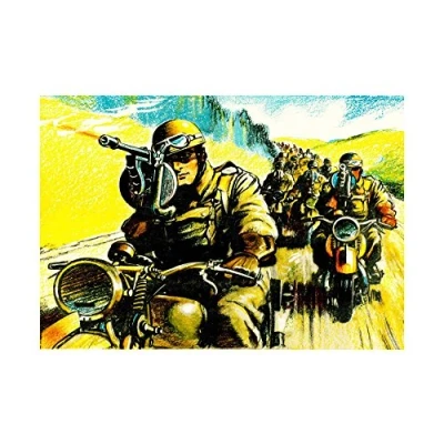 Wee Blue Coo War Motorcycle Troops Soldier Gun Column Convoy WWII UK Wall Art Print