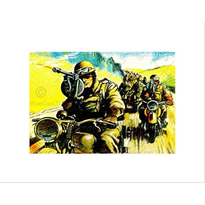 Wee Blue Coo War Motorcycle Troops Soldier Gun Column Convoy WWII UK Wall Art Print