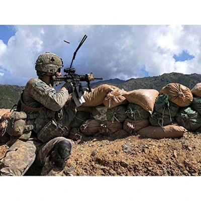 Wee Blue Coo War Photography Combat Soldier Firing Weapon Gun Shell Us Army Art Print Poster Wall Decor 12X16 Inch