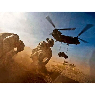 Wee Blue Coo War Photography Helicopter Soldier Desert Jeep Chinook USA Art Print Poster Wall Decor 12X16 Inch