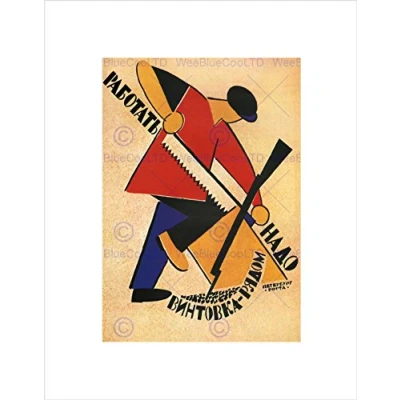 Wee Blue Coo WAR RUSSIAN CIVIL WORKER SOLDIER RIFLE SOVIET UNION AD FRAMED ART PRINT B12X1959