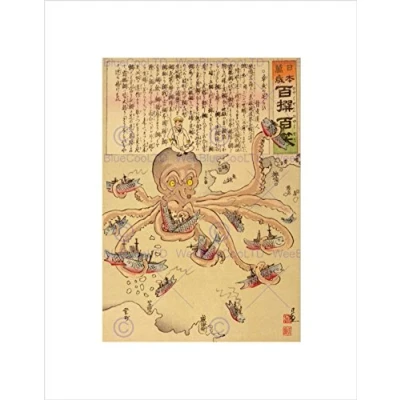 Wee Blue Coo War Russo Japanese Naval Battle Octopus Japan Drawing Tentacle Wall Art Print