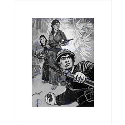 Wee Blue Coo WAR VIETNAM JUNGLE SOLDIERS DRAWING GRENADE GUN FRAMED ART PRINT B12X12302