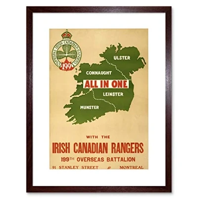 Wee Blue Coo War WWI Canada Irish Ranger Map Ireland Enlist Framed Wall Art Print