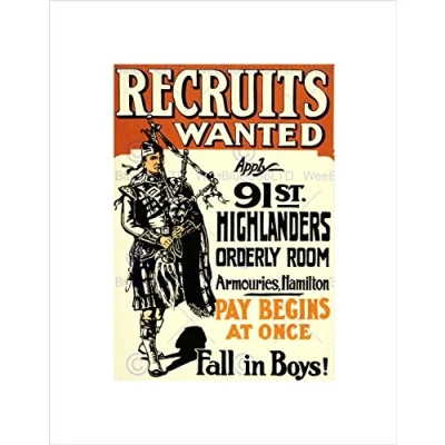 Wee Blue Coo War WWI Canada Recruit Enlist Piper Highlander Wall Art Print