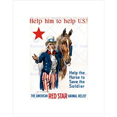 Wee Blue Coo WAR WWI CHARITY RED STAR UNCLE SAM HORSE RELIEF FRAMED ART PRINT B12X7675