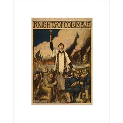 Wee Blue Coo WAR WWI KNIGHTS COLUMBUS CATHOLIC SOCIETY BLACK FRAMED ART PRINT B12X6018
